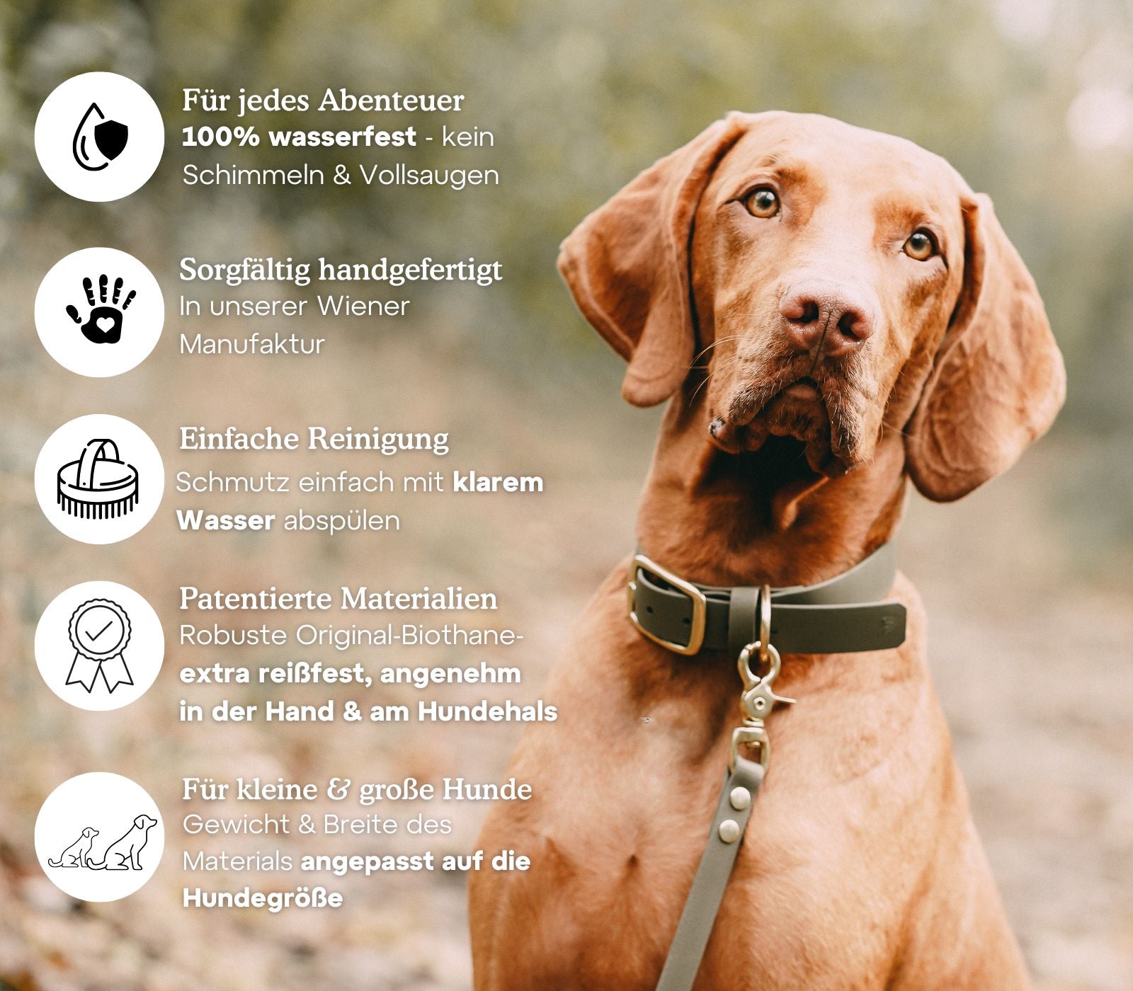 Entdecke unsere Hundehalsbänder, Leinen und Geschirre aus Biothane - das praktische, robuste Material in deiner Lieblingsfarbe.