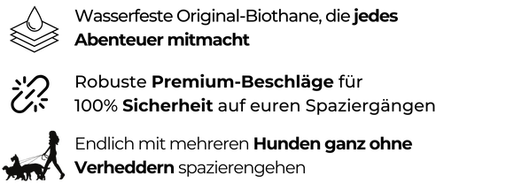 ✓ Zusätzlich ist Biothane schmutz- und geruchsabweisend. Sie kann also bedenkenlos auch bei etwas abenteuerlichen Ausflügen angelegt werden.