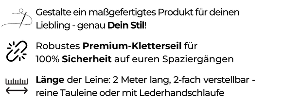 - Länge der Leine: 2 Meter, 2-fach verstellbar